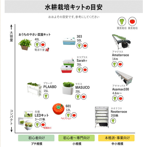 弊社では新鮮で安全安心な食の幸せを実現して頂けるように水耕栽培の専門店として水耕栽培用のさまざまなグッズを取り揃えています。最初はわたしも愛用中なのですが家庭菜園感覚の水耕栽培入門キットもあります。